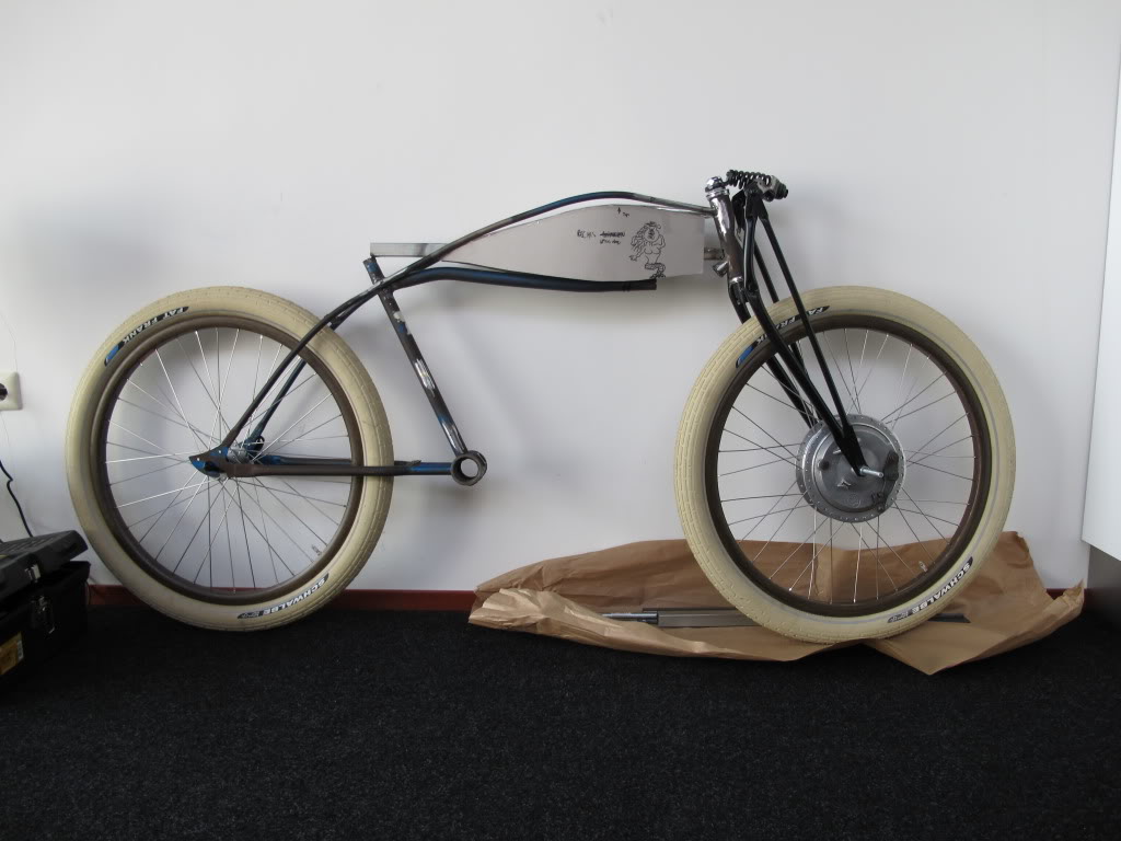 Extending the frame to fit the board-track style and engine setup.