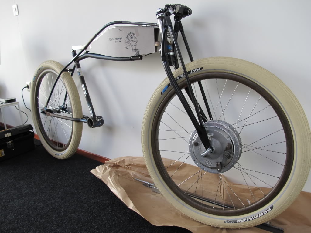 Extending the frame to fit the board-track style and engine setup.